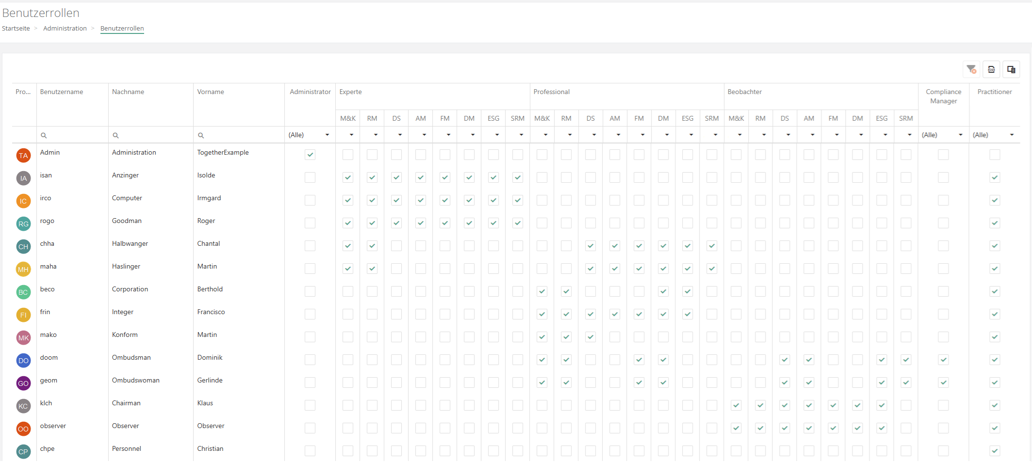 Users of this role support the experts of the management systems in the fulfillment of their tasks. A professional has access to all tasks in the management systems they are assigned to, but has limited editing rights.