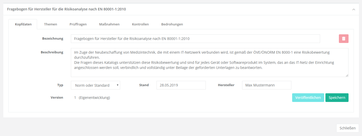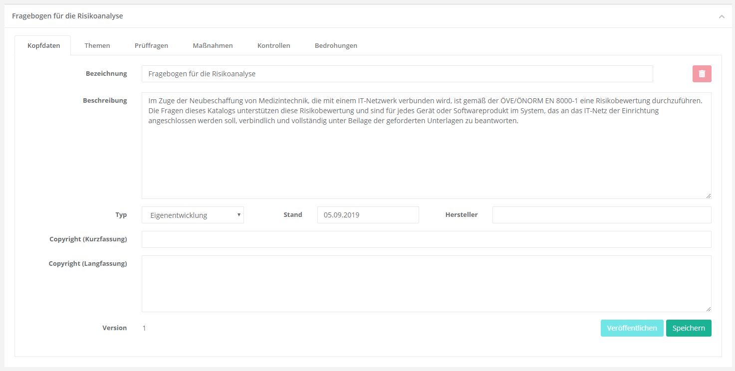 Maske der Kopfdaten einer WDB