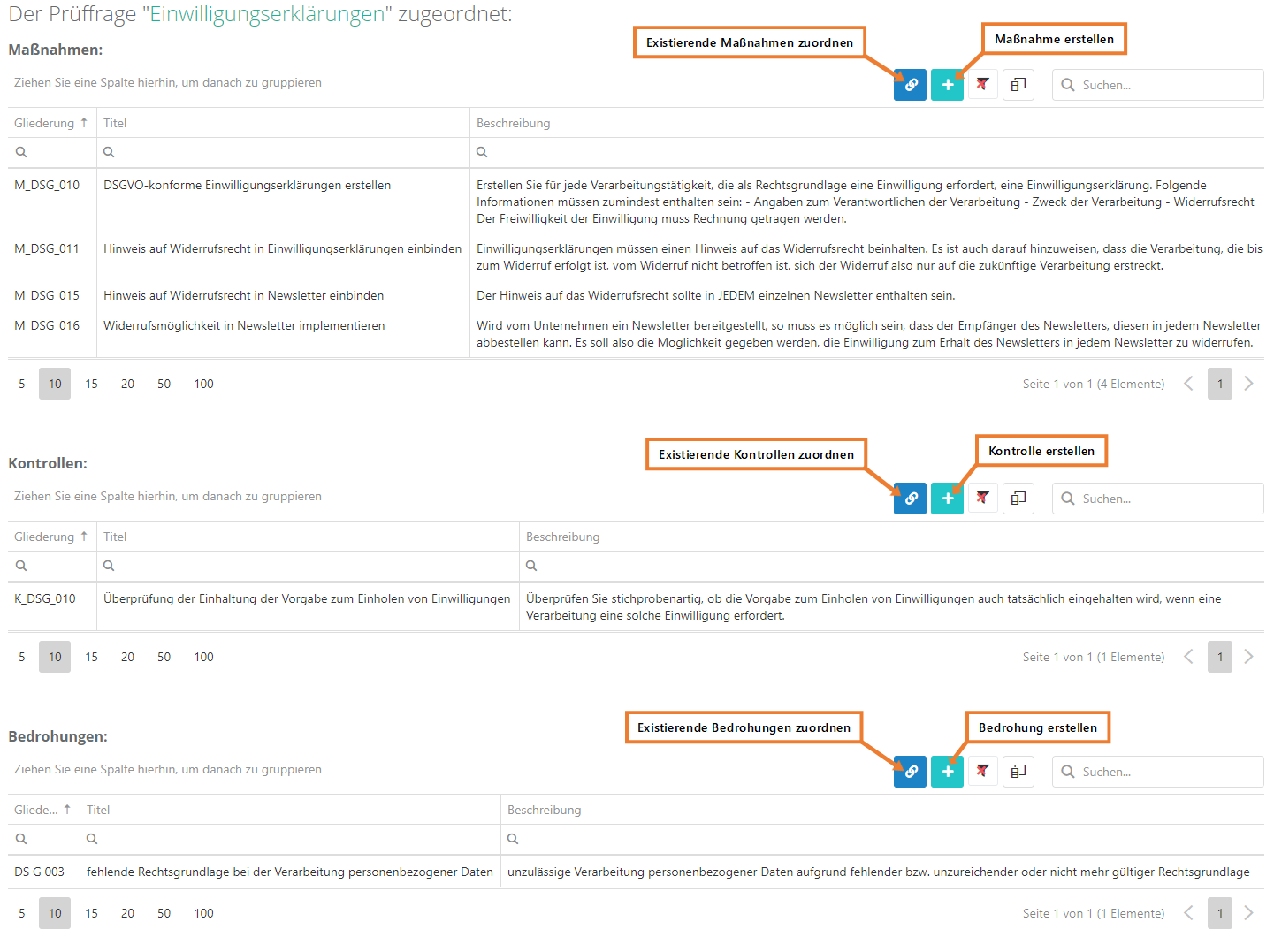 Prüffrage Maßnahmen, Kontrollen und Bedrohungen zuordnen