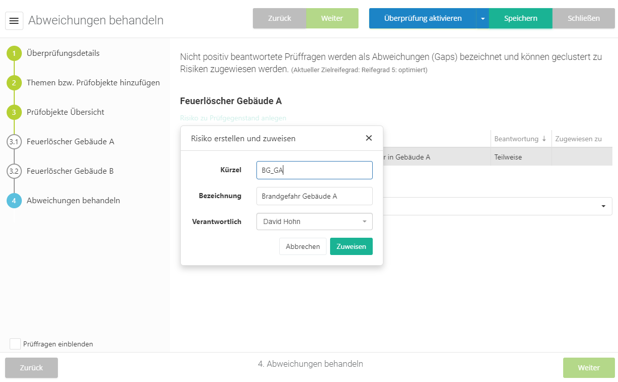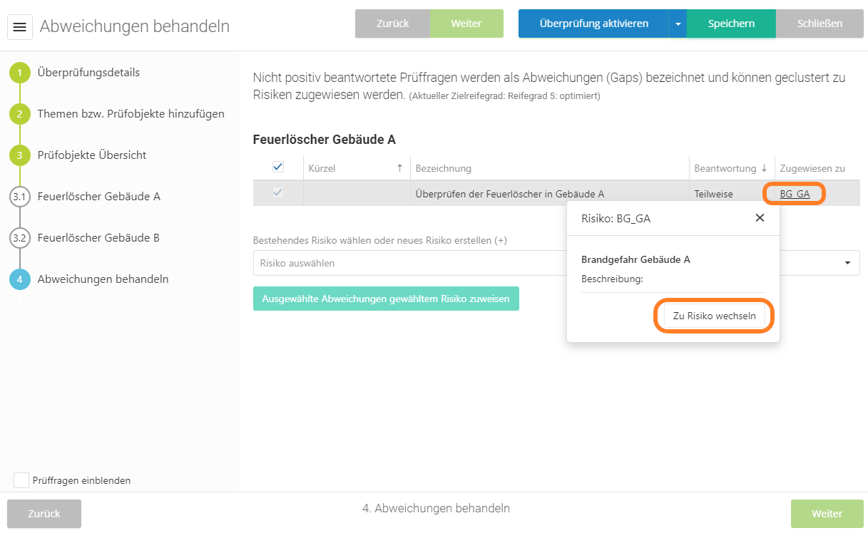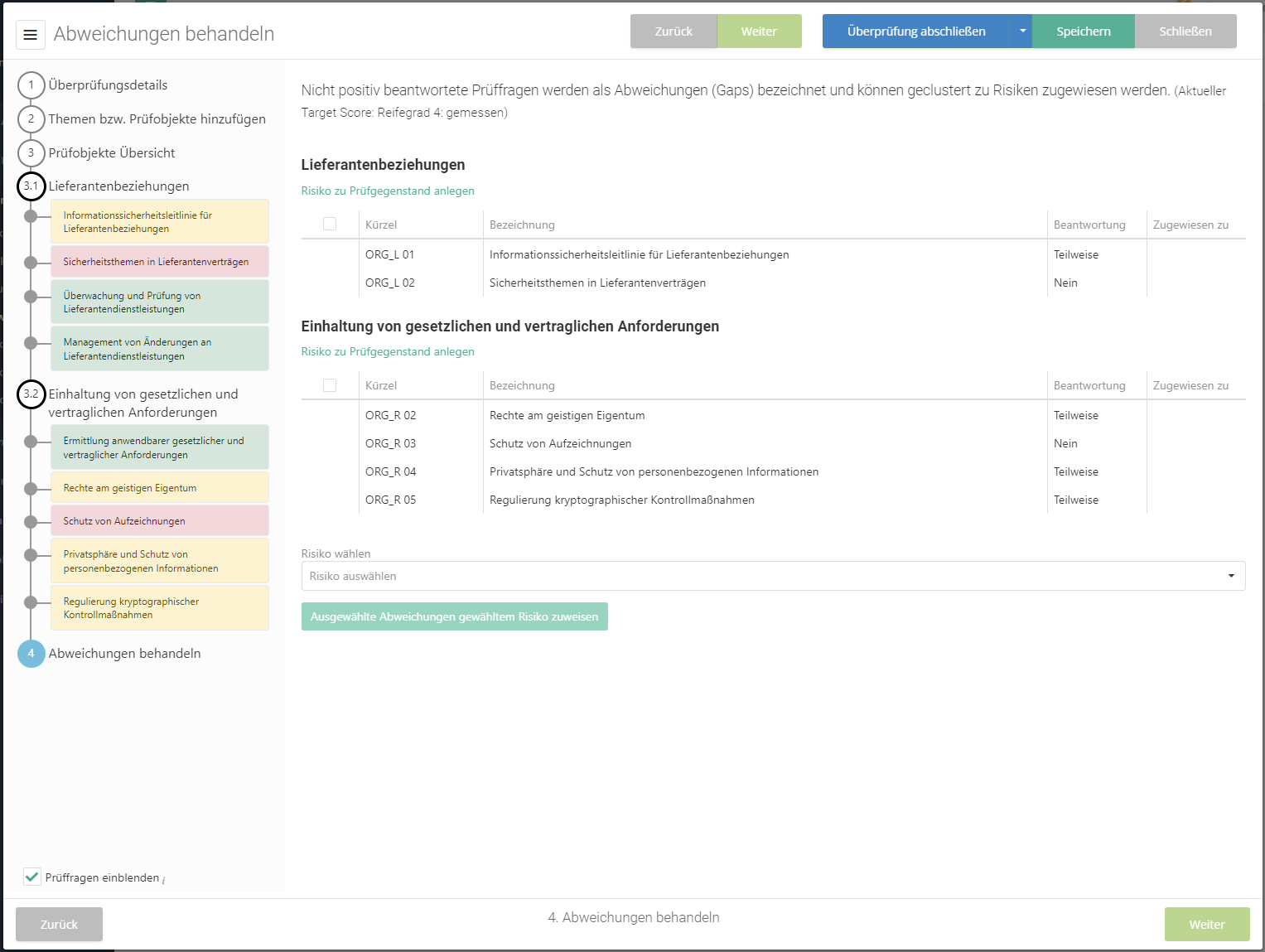 Diesen Abweichungen können Sie hier nun Risiken zuordnen.