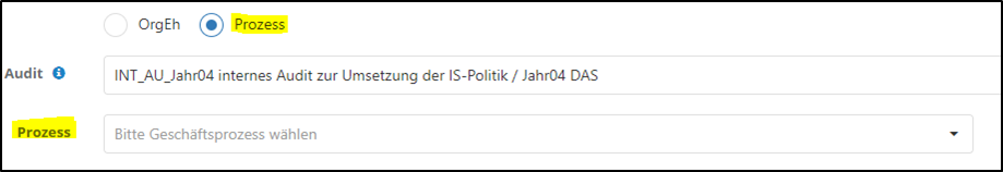 Nun ist es auch möglich zu unterscheiden, ob man die Bewertung für die Organisationseinheit oder einen Prozess vornehmen möchte. Dazu muss man im Schritt 1 der BIA die Auswahl auf „Prozess“ umsetzen, um dann auch in der Auswahlcombobox Prozesse satt Organisationseinheiten auswählen zu können.