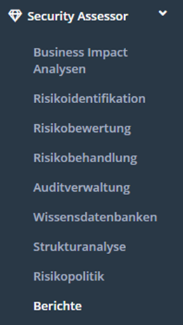 Im Security Assessor findet sich ein neuer Menüpunkt „Berichte“: