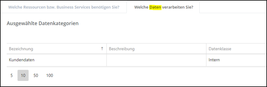 Der Bewertungsprozess im Schritt 3 stellt sich dann gleich dar, unabhängig davon ob die Beziehung zwischen Organisationseinheit bzw. Prozess und Ressource bzw. Datenkategorie bewertet werden soll.