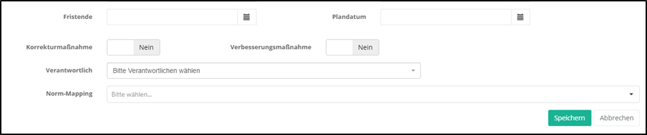 Für eine Maßnahme ist es nun möglich die Kennzeichnung als Korrektur- und/oder Verbesserungsmaßnahme zu setzen.