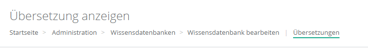 Seit dieser Version ist es möglich, die Wissensdatenbanken in mehreren Sprachen zu pflegen. Wenn Sie eine bearbeitbare Wissensdatenbank unter Administration > Wissensdatenbank öffnen findet sich in der Menüleiste oberhalb der geöffneten Wissensdatenbank der neue Menüpunkt Übersetzungen.