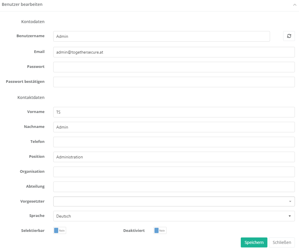 Durch die Neuerungen im Bereich AD- bzw. ADD-Integration wurde die Maske zur Anlage und Bearbeitung der Benutzerdaten generell umgestaltet. Dabei wurde auch die Passwortvergabe von einer ursprünglich eigenen Maske, auf die nun zentrale Konfigurationsmaske verlegt.