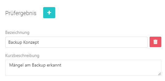 Es ist nun möglich auf der Prüfergebnis-Seite ein weiteres Prüfergebnis mit der „+“-Schaltfläche hinzuzufügen. Man erspart sich dadurch den Wechsel auf die Prüfobjekt-Übersichtsseite: