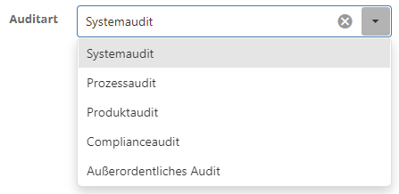 Zur deutlicheren Darstellung des Auditgegenstands wurde die Auditverwaltung um fünf Auditarten ergänzt. Die Art kann optional zusätzlich zur Parteilichkeit erfasst werden. Die gewählte Art des Audits ist in der Übersicht sowie in den entsprechenden Berichten ausgewiesen.