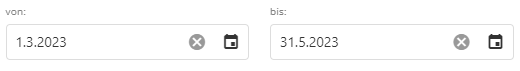 Dieser Filter erlaubt die Einschränkung der Daten im KPI mit einem von-Datum und einem bis-Datum. Die Daten können damit ab einem gewissen Zeitpunkt, bis zu einem gewissen Zeitpunkt oder innerhalb eines gewissen Zeitraums angezeigt werden.