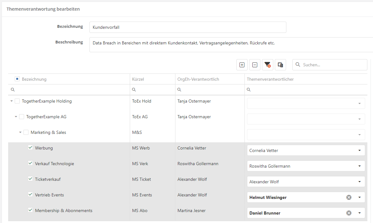 Hier kann eine bestehende Themenverantwortung ausgewählt oder ein neuer OrgEh-/Personenkreis für die aktuelle Thematik definiert werden.