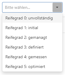Das CMMI-Prozessmodell, das für Bewertungen die Reifegrade 1-5 anbietet, wurde um „Reifegrad 0: unvollständig“ erweitert. Aktuell betrifft dies primär die abonnierbare Wissensdatenbank „VDA ISA Self Assessment (TISAX)“. Der erweiterte Reifegrad kann auch verwendet werden, wenn man ein freies Prüfergebnis erfasst oder eine neue Wissensdatenbank mit Prozessfragen selbst erstellt.