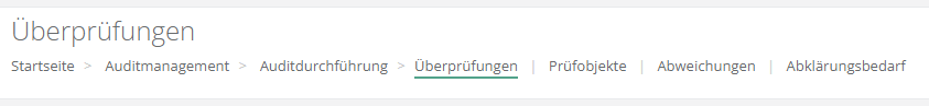 Auf Kundenfeedback hin wurde die Einschränkung entfernt, dass hier nur mit Audits verknüpfte Überprüfungen angezeigt werden. Jedoch sind Überprüfungen, die mit keinem Audit in Verbindung stehen, entsprechend markiert. Auch die drei neuen Punkte neben den Überprüfungen geben eine Gesamtübersicht über die Inhalte des Managementsystems.