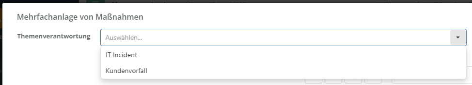 Sie wählen dafür erst die gewünschten Organisationseinheiten aus und entscheiden dann, ob die Maßnahmen der Thematik vom OE-Verantwortlichen oder einer bestimmten anderen Person oder einem Team erledigt werden sollen.
