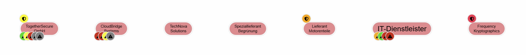 - Die Lieferantensicht lässt erkennen, welche Lieferanten angelegt wurden, mit welchen Organisationseinheiten, Ressourcen, Daten und Prozessen sie in Verbindung stehen und welche Risiken mit ihnen verknüpft sind.