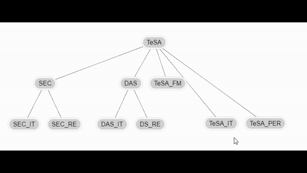 - Bei der Organisationssicht kann man jede Einheit einzeln ein- und ausblenden. Wählt man einen Knoten aus, dann werden alle darunterliegenden Einheiten mit ausgewählt. Will man das nicht, kann man mit einem Rechtsklick auf den Knoten, den man auswählen will, ein kleines Menü öffnen, in dem man auf „Auswählen“ klicken kann. Dadurch wird die Einheit ausgewählt, ohne die darunter liegenden Einheiten mit auszuwählen.