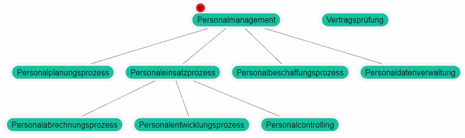 Knoten mit "Alt"-gedrückt erstellen - Bei Daten, Prozessen und Organisationseinheiten können Sie, wenn Sie doppelt auf das Element klicken, in der Maske ein übergeordnetes Element auswählen oder die Verbindung zum übergeordneten Element aufheben.