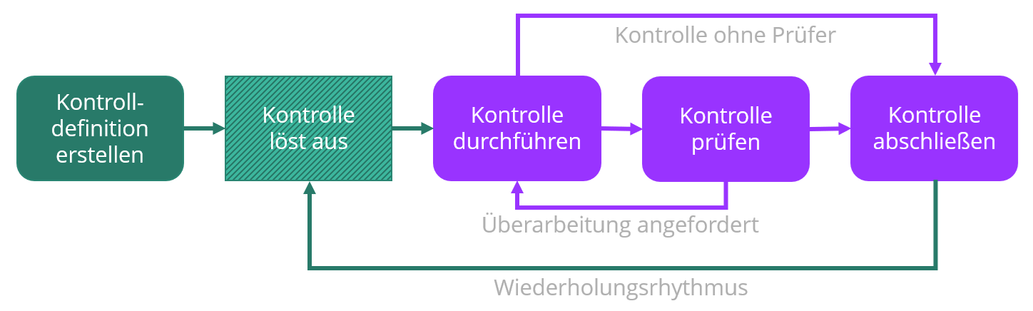 Eine Kontrolldefinition ist die Grundlage einer in der Regel wiederkehrenden Aufgabe, die in HITGuard erstellt und einem Umsetzer zur Durchführung und einem Prüfer zur Prüfung zugewiesen wird. Eine Kontrolle ist die Aufgabe, die auf Basis des Wiederholungsrhythmus auslöst und die durchgeführt und geprüft wird.