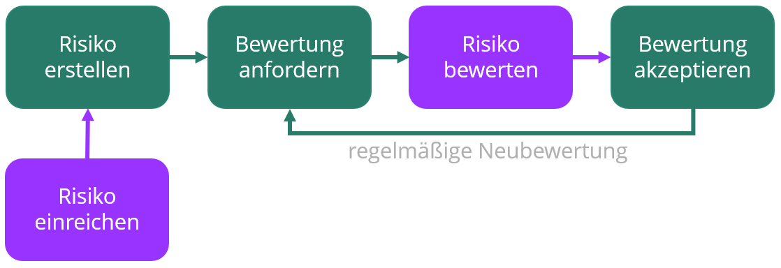 - Bekommt ein E-Mail, wenn die Überprüfung des Risikos/der Chance von ihm angefordert wird.