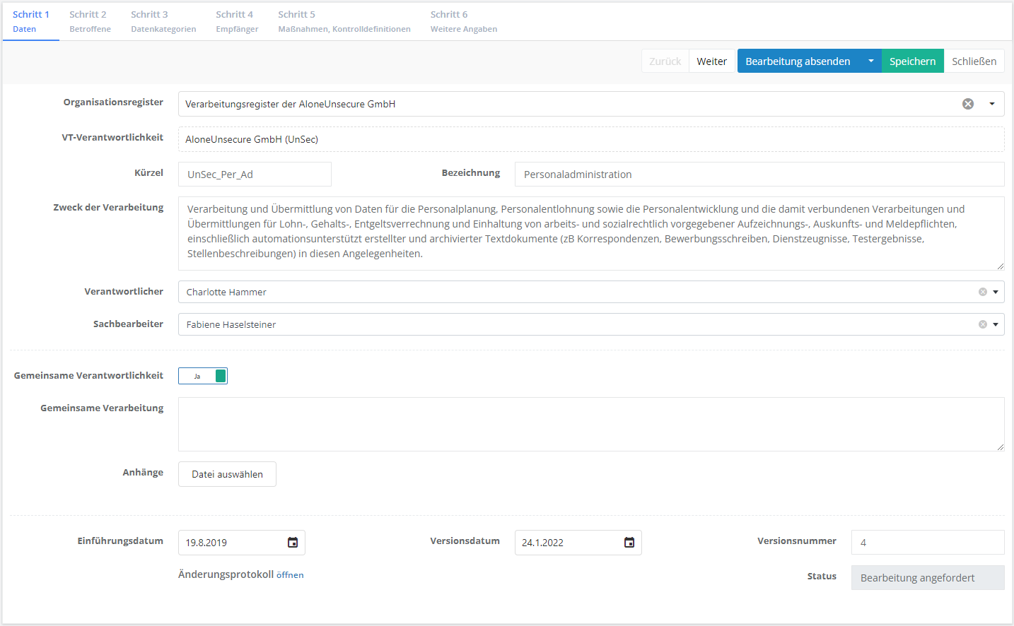 06:17, 26. Jan. 2022 | Verarbeitungstätigkeit erstellen S1 Kopfdaten.PNG (Datei) | 88 KB | 3 | ||