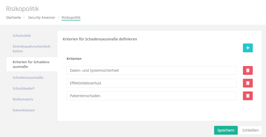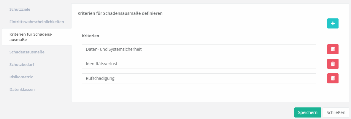 Kriterien für Schadensausmaße